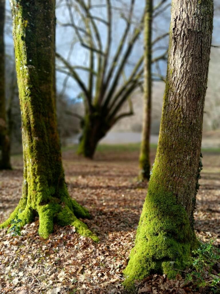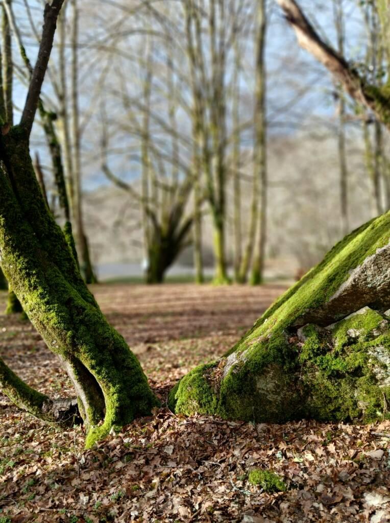« Un paysage en camaïeu de bruns, où les seules taches de couleurs vives de cette palette hivernale sont le vert, presque fluo, des mousses qui recouvrent les troncs d’arbres et les rochers. »